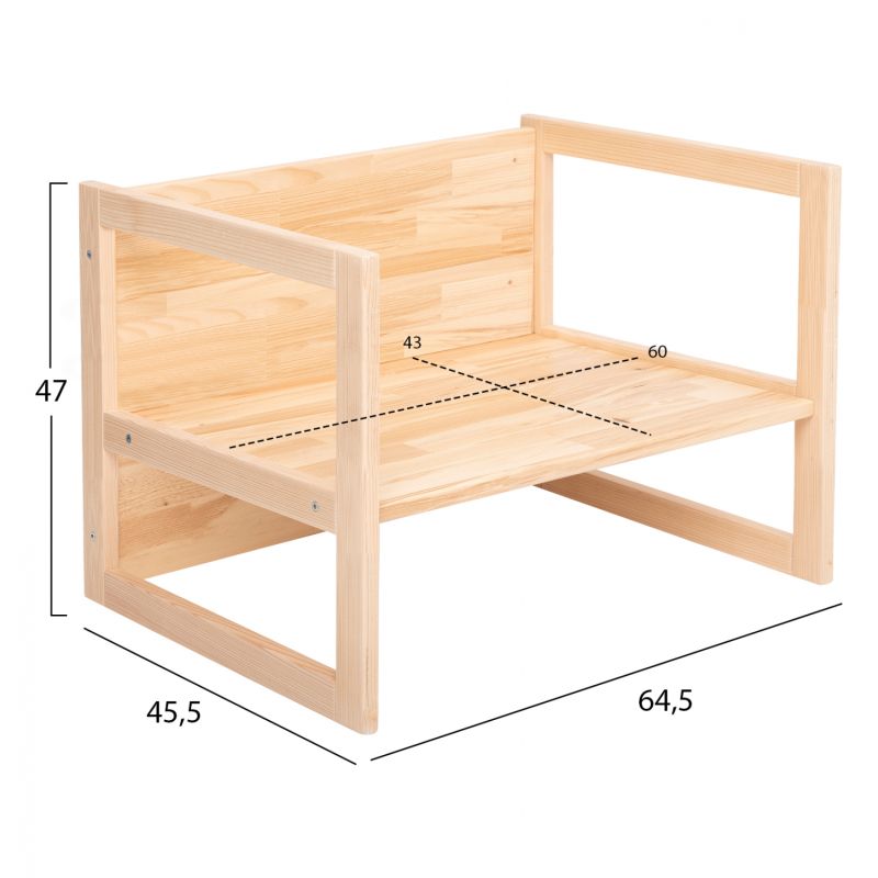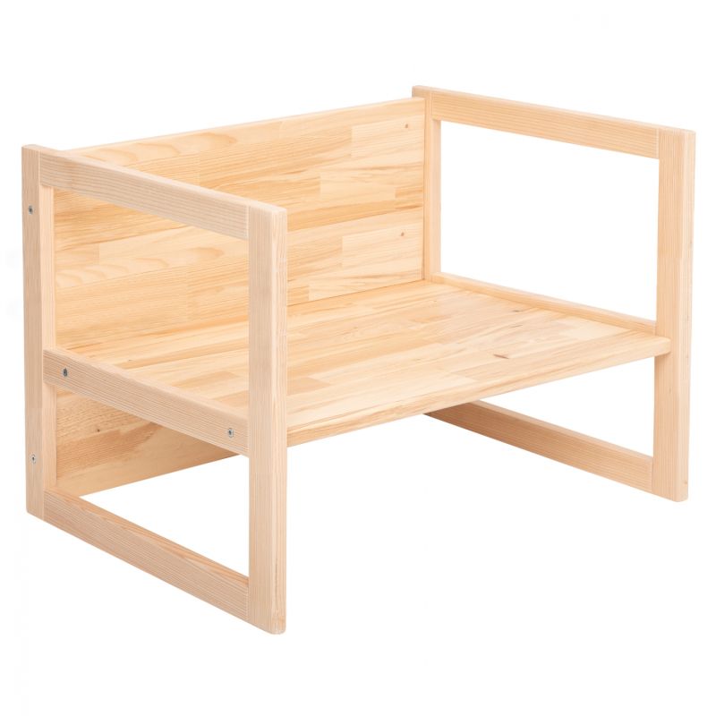 Παιδικό ξύλινο παγκάκι που μπορεί να μετατραπεί με μια μόνο κίνηση σε τραπέζι.