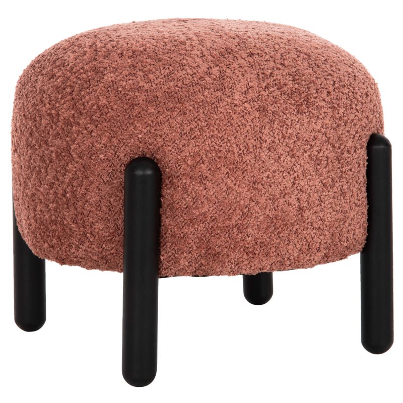 The EWAN stool is a modern and stylish proposal that will leave its mark in any living room. Its round shape combined with the warm boucle fabric in PINK color and the black metal legs, make up a beautiful and practical piece of furniture, which can be combined with a variety of other colors in the living room decoration.