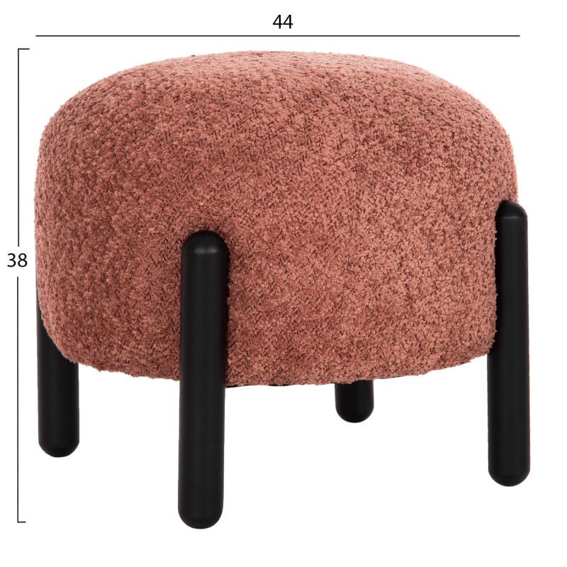 STOOL ROUND EWAN HM9596.02 PINK BOUCLE FABRIC-BLACK METAL LEGS Φ45x36Hcm.