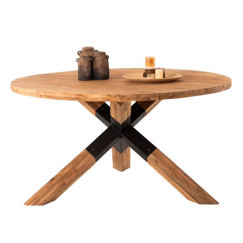 DINING TABLE ROUND KATTE HM9559 RECYCLED TEAK WOOD-LEGS WITH METAL Φ150x78Hcm.
