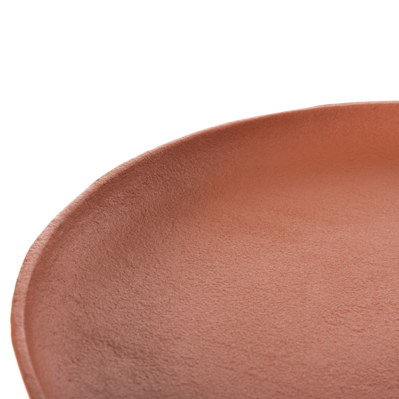 The DELCON side table is one of the new additions to our range. It is a round metallic table with a cone-shaped base. Its color is ORANGE throughout. The peculiarity of this table is that the texture of the paint is rough, and that the perimeter of the tabletop is raised giving the impression of a plate. Ideal for both home and business premises.