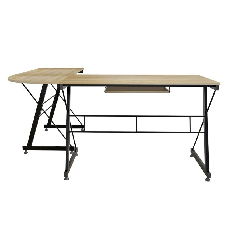 Corner desk with elegant and simple design, made of durable melamine corner in sonama shade with black metal frame.