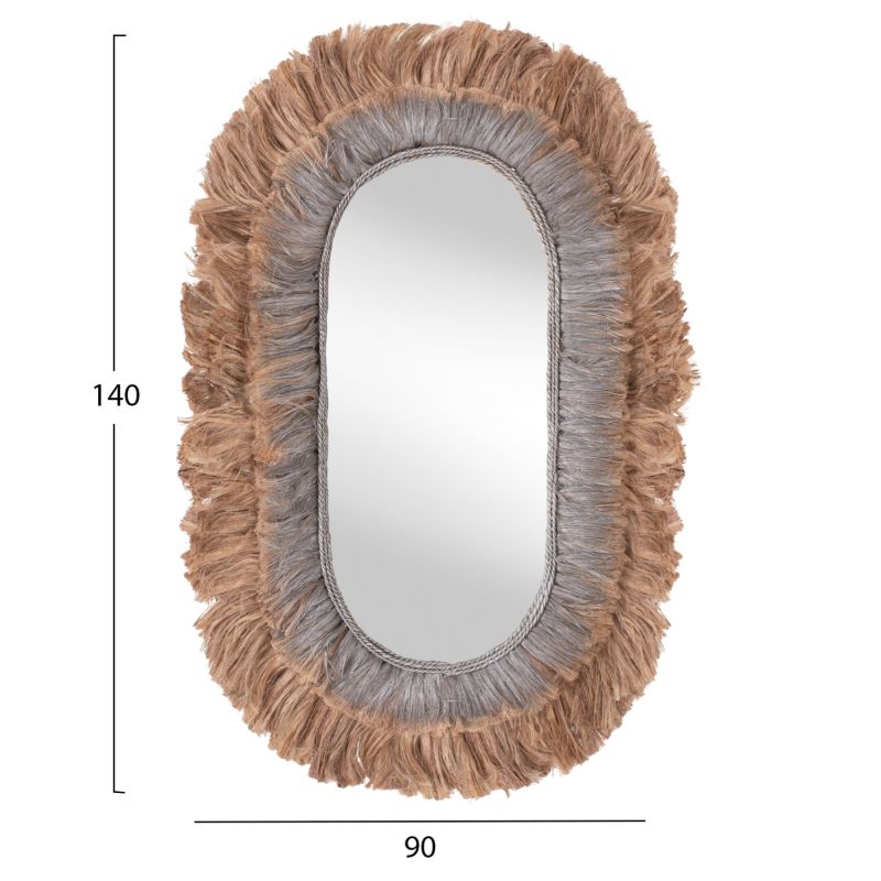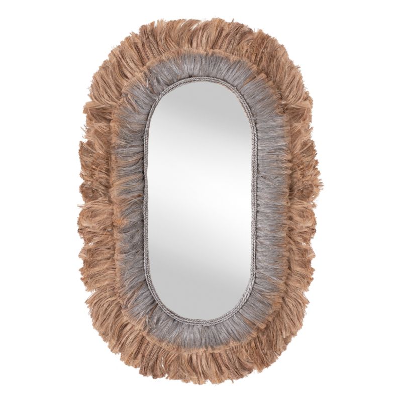 MIRROR OVAL MADE OF ABACA FIBERS IN NATURAL AND SILVER COLOR 90x5x140Hcm.HM7738