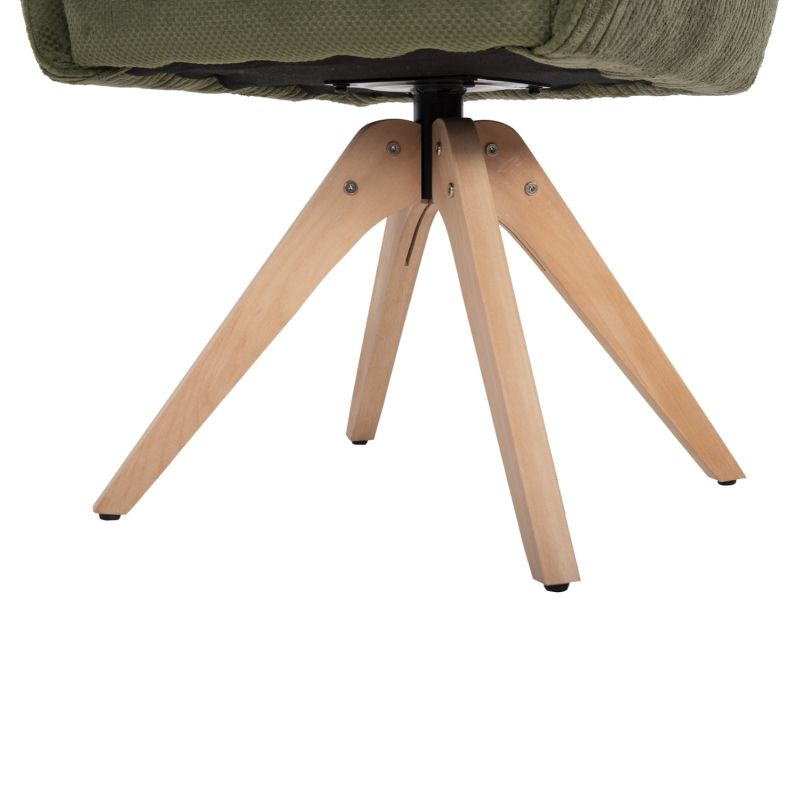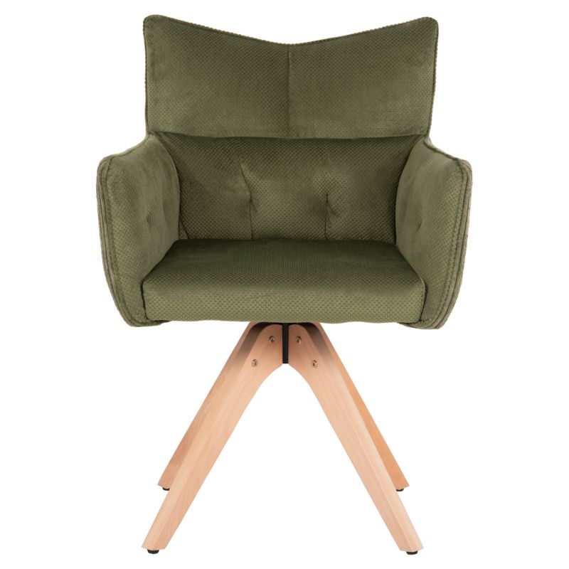 The QUILL armchair is a beautiful choice for your dining room. The backrest is of medium height and in combination with the arms offers comfort and proper support. The upholstery has been made entirely with quality fabric in GREEN color with a different style on the outside of the armchair, while the support is made with a base with 4 legs of beech wood in NATURAL color.