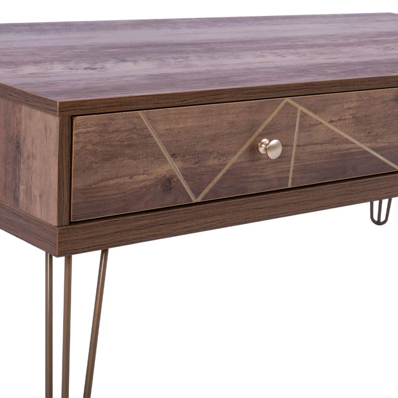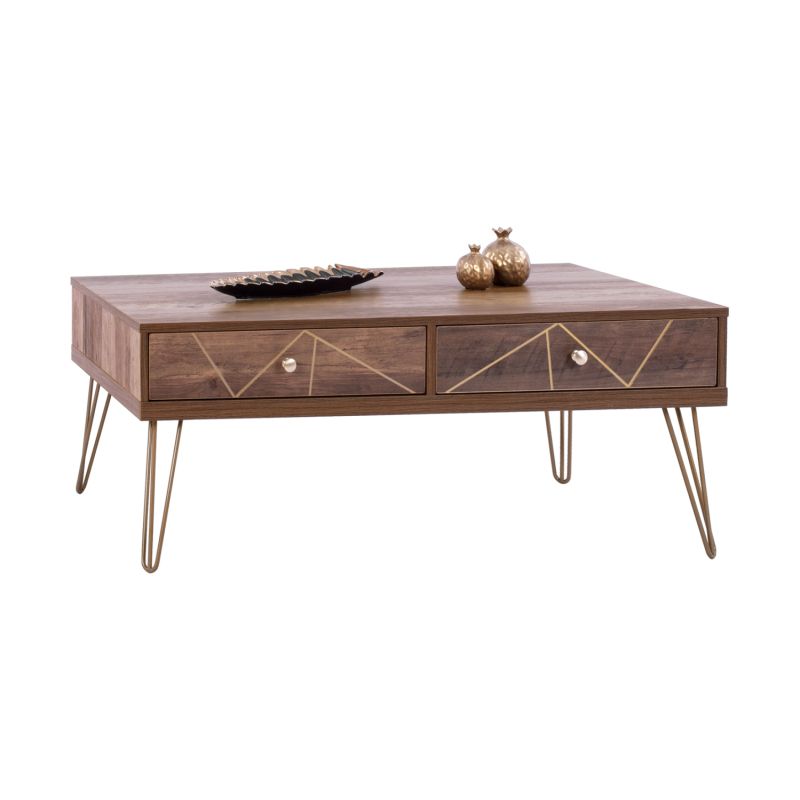Coffee table from KAITLYN series in walnut with gold color.