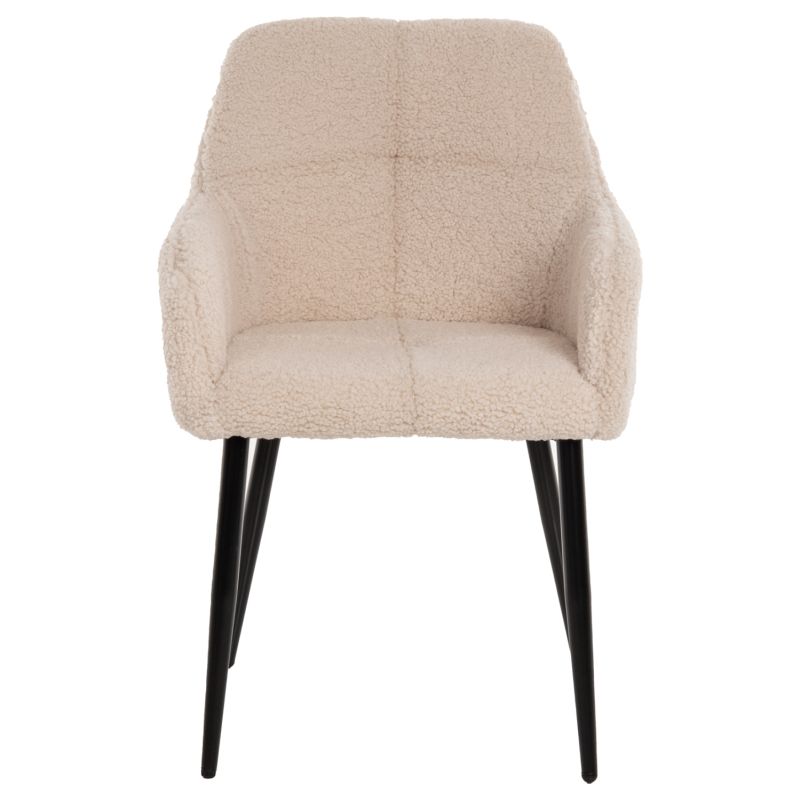 ARMCHAIR SHELLY HM8591.02 TEDDY FABRIC IN WHITE-BLACK METAL LEGS 57x55x87Hcm.