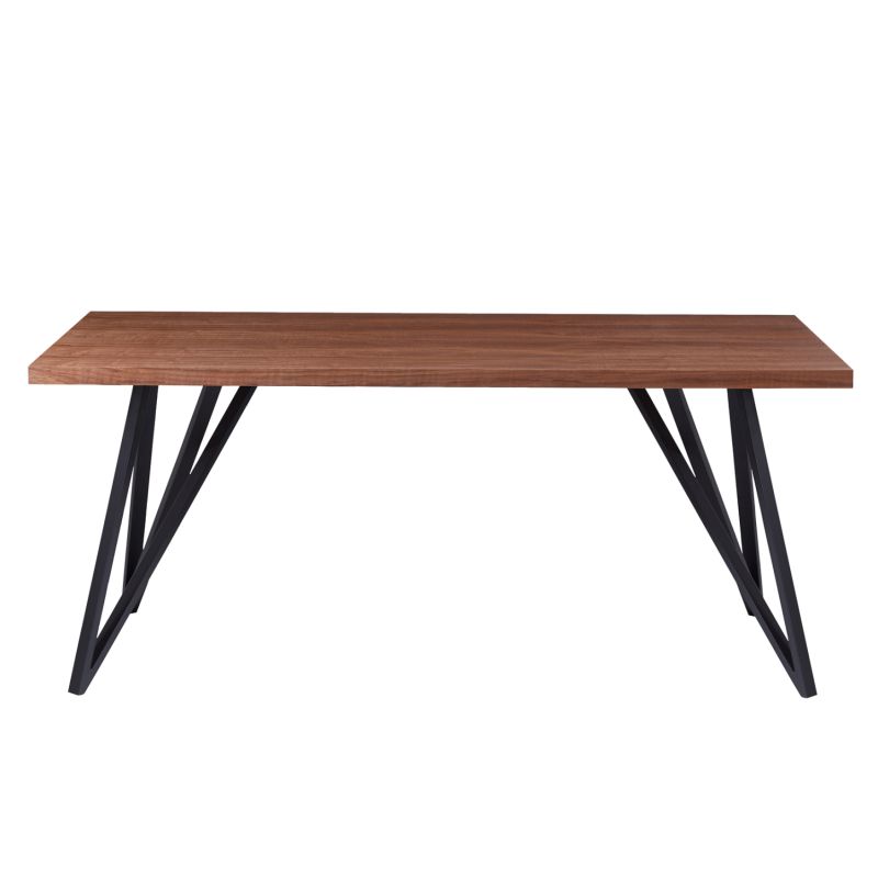 GROW is a rectangular dining table, with MDF tabletop with Ashtree wood veneer in dark WALNUT color and rustic style. This surface is slanted and rests on 4 beautiful black metal legs in a reversed Λ shape. It is an imposing table with a beautiful two-tone color, as a result of which it can fit aesthetically in almost any dining space.