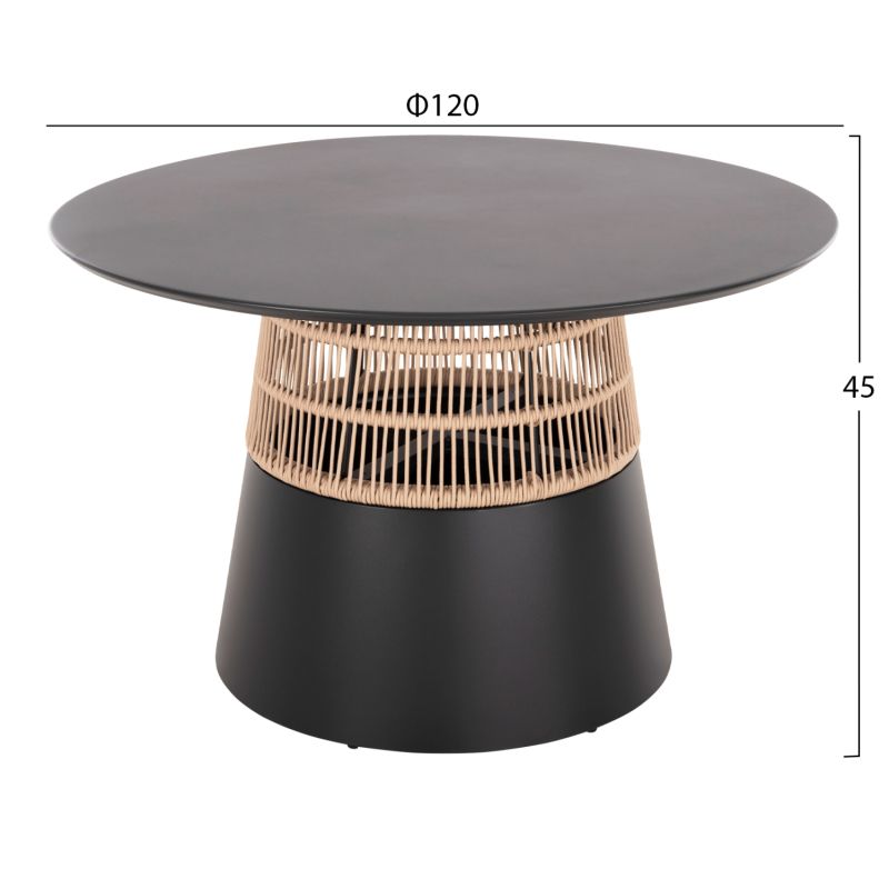 ROUND TABLE SAEID HM6106.01 ALUMINUM IN ANTHRACITE-SYNTHETIC ROPE IN BEIGE Φ120x75Hcm.