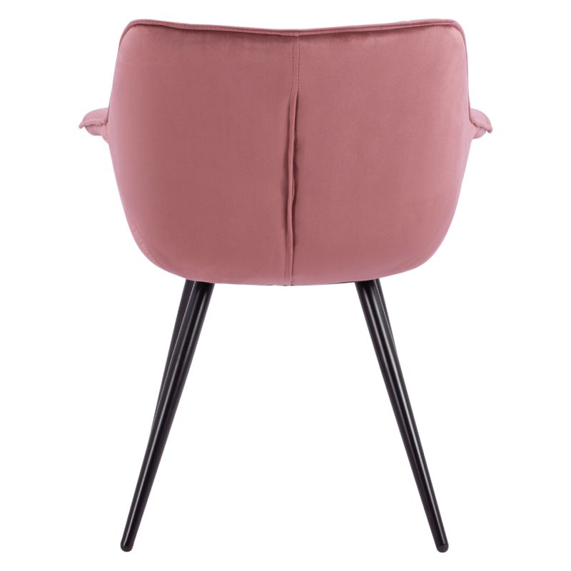 The BENJAMIN armchair is upholstered in velvet in a dusty pink shade, while the legs are metallic in a black shade.