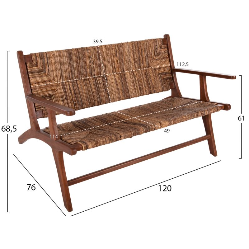 OUTDOOR SOFA 2-SEATER TONDO HM9915 SOLID TEAK WOOD-BANANA ROPE 120x76x68,5Hcm.