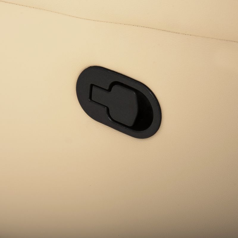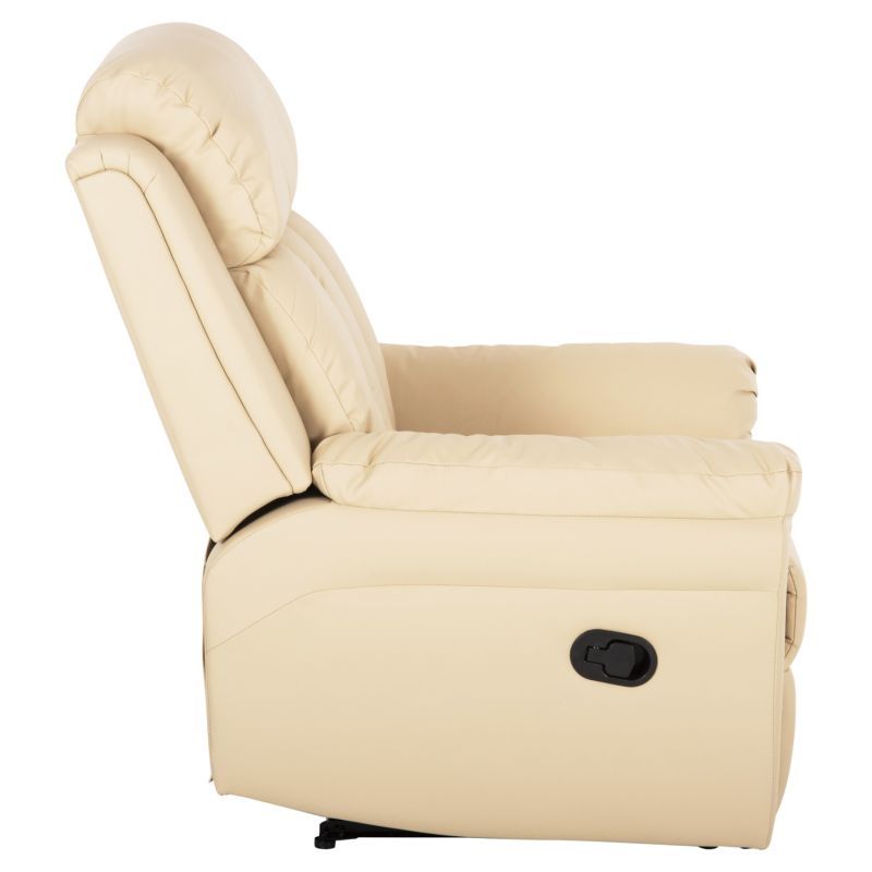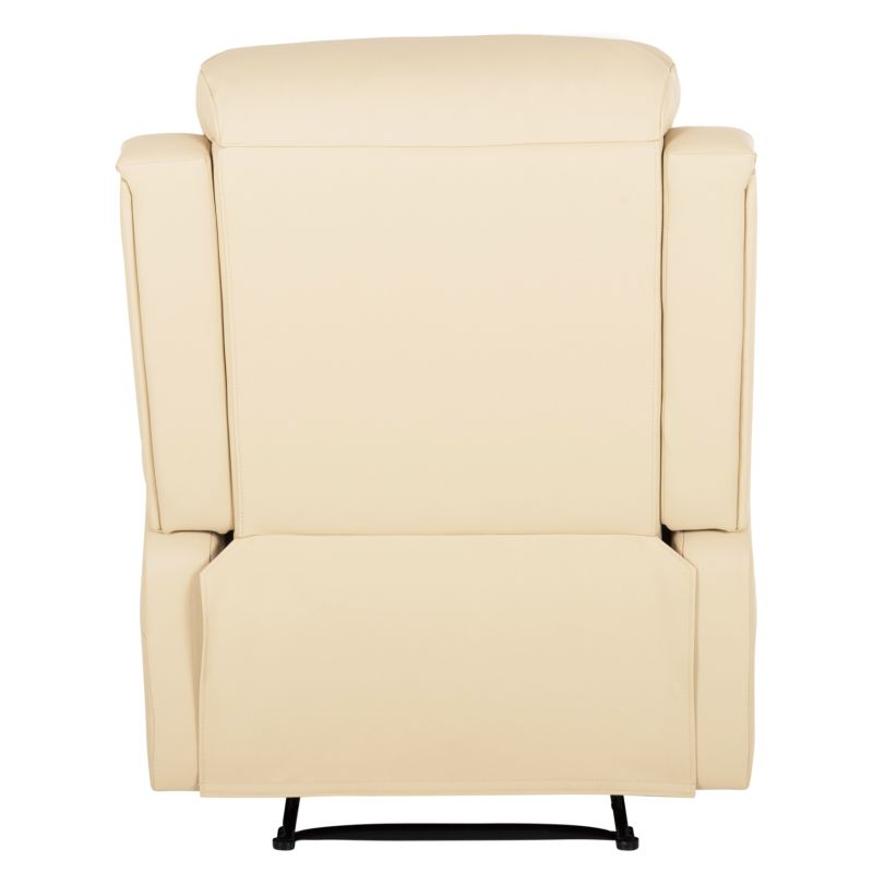 HAPPER with ECRU PU leather upholstery, is a beautiful armchair that is the dream of many. Visually, it fills everyone's senses with its rich dimensions and comfortable cushions. The backrest is high while the seat is deep, and the arms invite you to spread your hands on their rich cushions. And when you come home from work and want to relax in front of your TV, or read your newspaper, or your favorite book in front of the window or the fireplace, then the relax mechanism with the elegant lever on the side of the armrest slightly lowers the back and in combination with the folding footrest will offer you unique moments of relaxation.