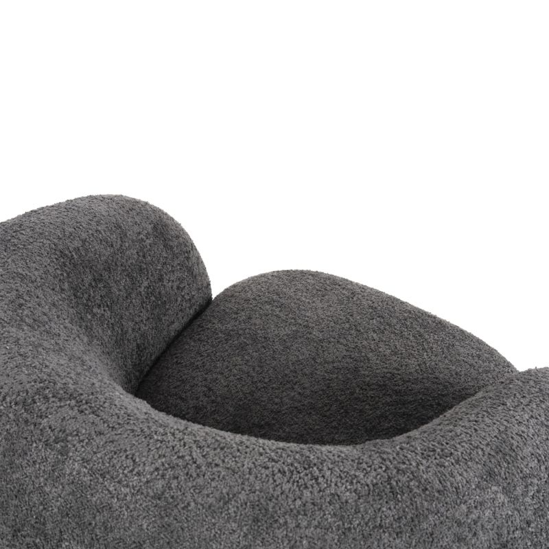 The whole armchair is upholstered in high-quality boucle fabric. This is any fabric that has a knot-curl in its weave. It is made of almost all raw materials (although it is usually synthetic) with special knotted threads or highly twisted threads, so that it has a curly surface. It does not wrinkle and can be plain, melange, checkered or tweed.