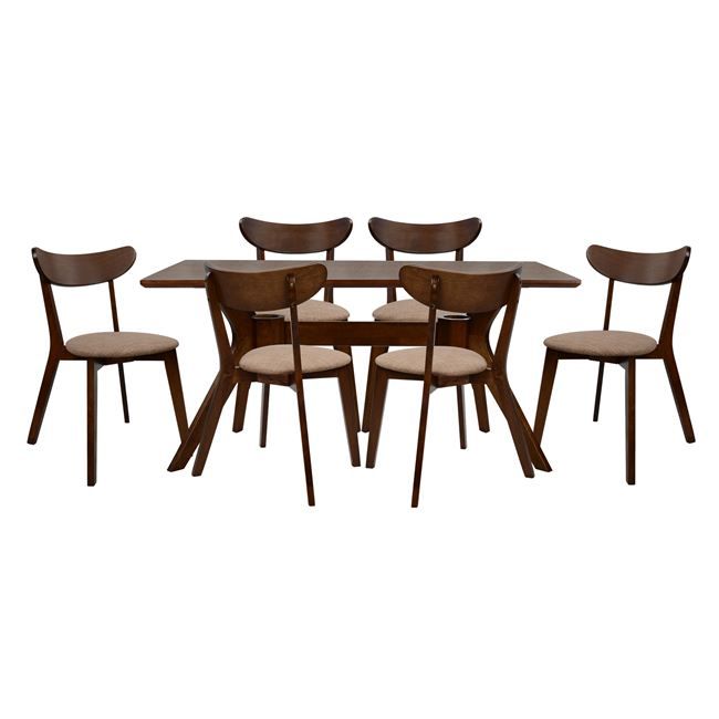 Set Dining Table 7 pieces Walnut Table & Roselyn Chairs HM10068