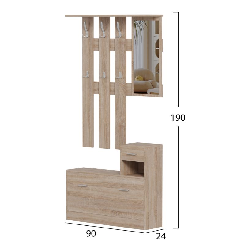 ENTRYWAY SET WITH MIRROR GORN HM2473.01 MELAMINE IN SONAMA 90x24x190Hcm.