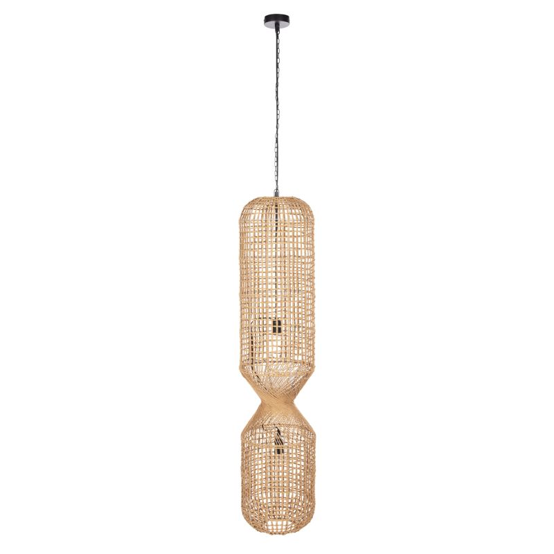 CEILING PENDANT LAMP HM4345 CYLINDRICAL-PAPER ROPE ΙΝ SAND BEIGE-2 BULBS Φ30,5x132Hcm.