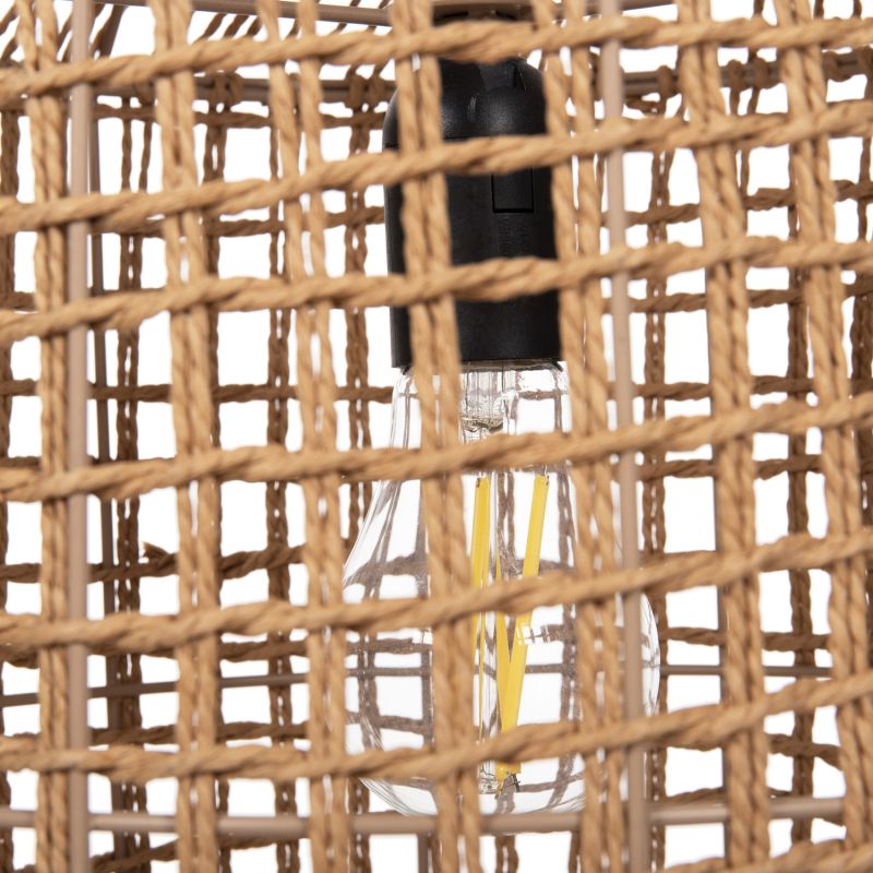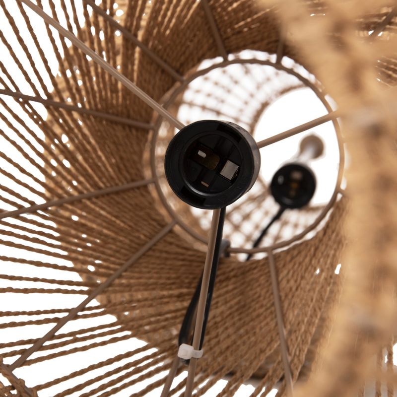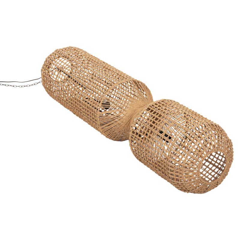 Discover this new addition to our lighting range. It is an imposing ceiling pendant lamp, which accepts 2 light bulbs in vertical arrangement. The frame is metal but what dominates is the covering with excellent quality paper rope in sand BEIGE color. A beautiful lamp that diffuses light in all directions and creates the atmosphere you always imagined for your space.