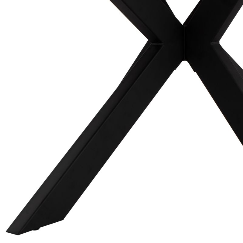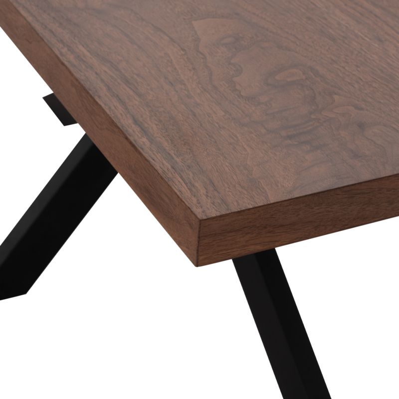 HΜ9311.02 is a rectangular dining table, with MDF tabletop with walnut wood veneer in WALNUT color. This surface rests on modern black metal double-cross legs. It is an imposing table in a large dimension and with a beautiful two-tone coloring, as a result of which it can fit aesthetically in almost any dining space.