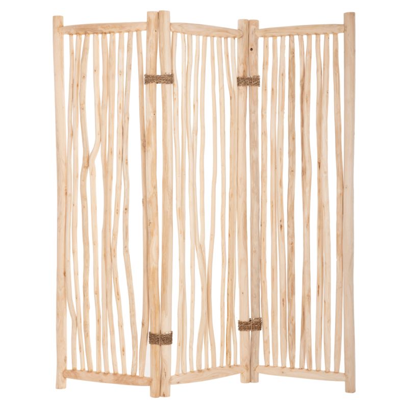 DIVIDER WITH 3 LEAFS ZENDOR HM4316 TEAK BRANCHES IN NATURAL 165x180Hcm.