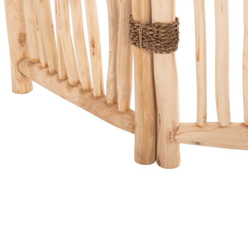 The room divider is made of solid TEAK branches. When we refer to solid wood, we mean wood made entirely from the trunk of a tree. Solid wood is the most expensive choice in terms of wood but stands out for its timeless aesthetics.