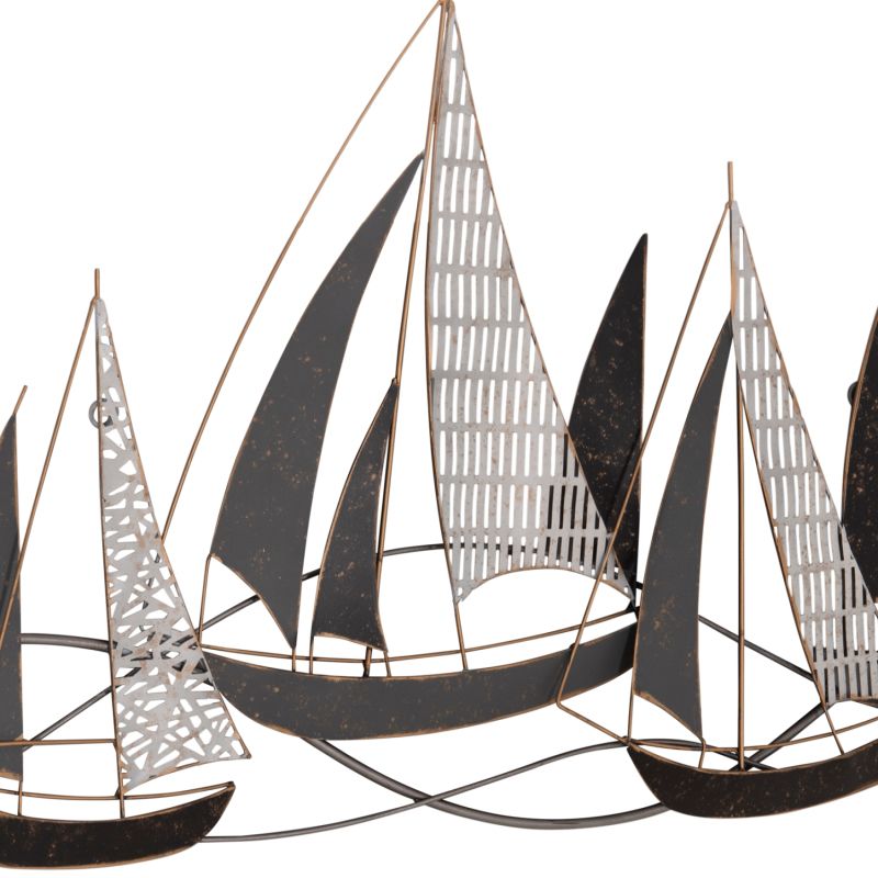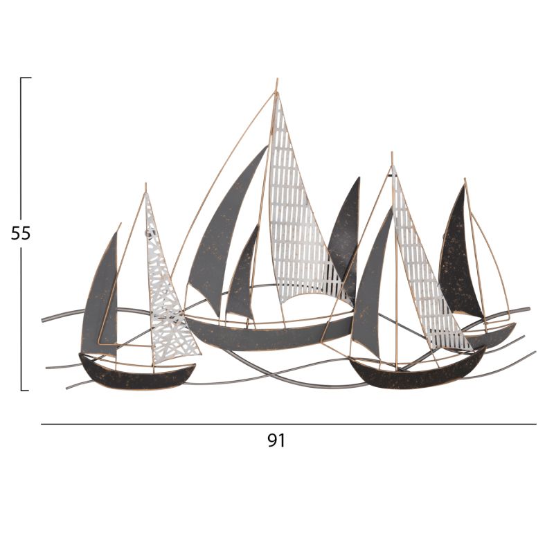 METAL WALL DECORATION HM7160 COAL WHITE GOLD 91x3x55Η cm.