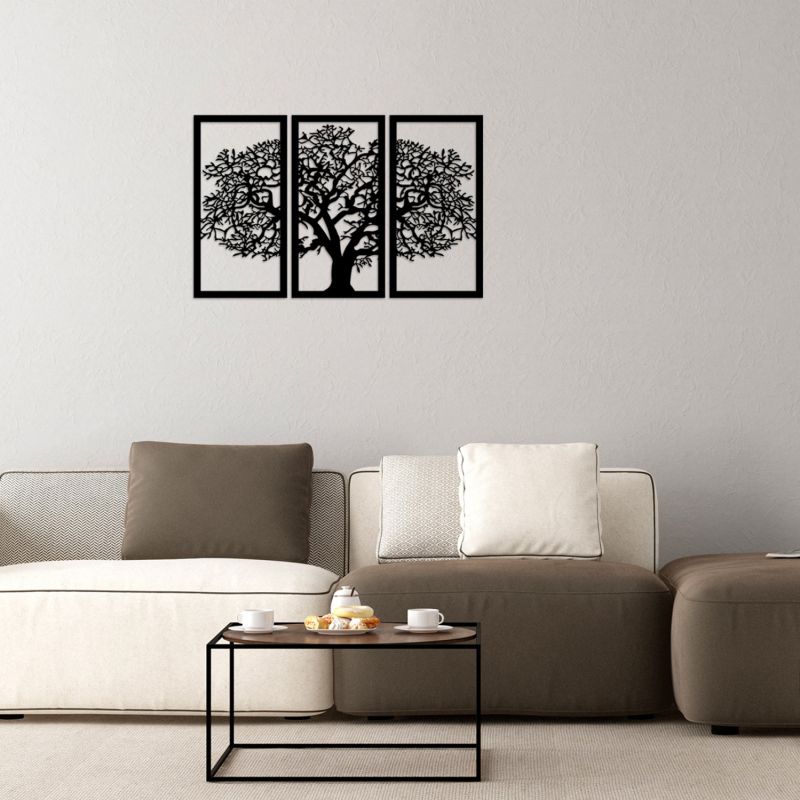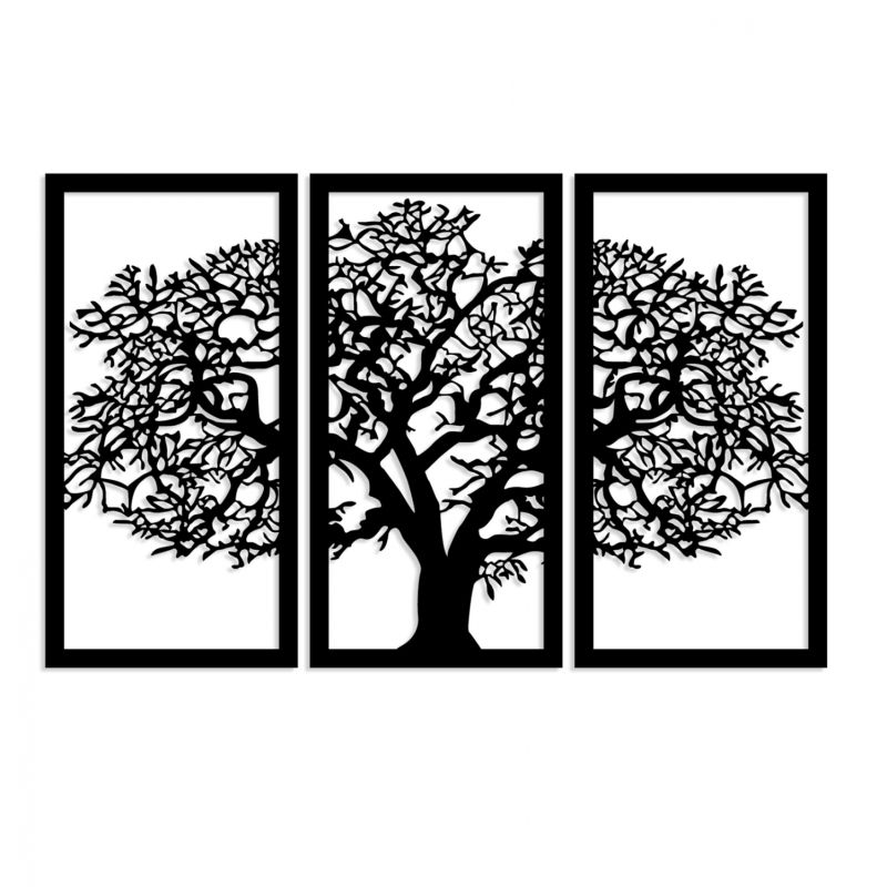 WOODEN BLACK WALL DECORATION WITH TREE 105X66 HM7221