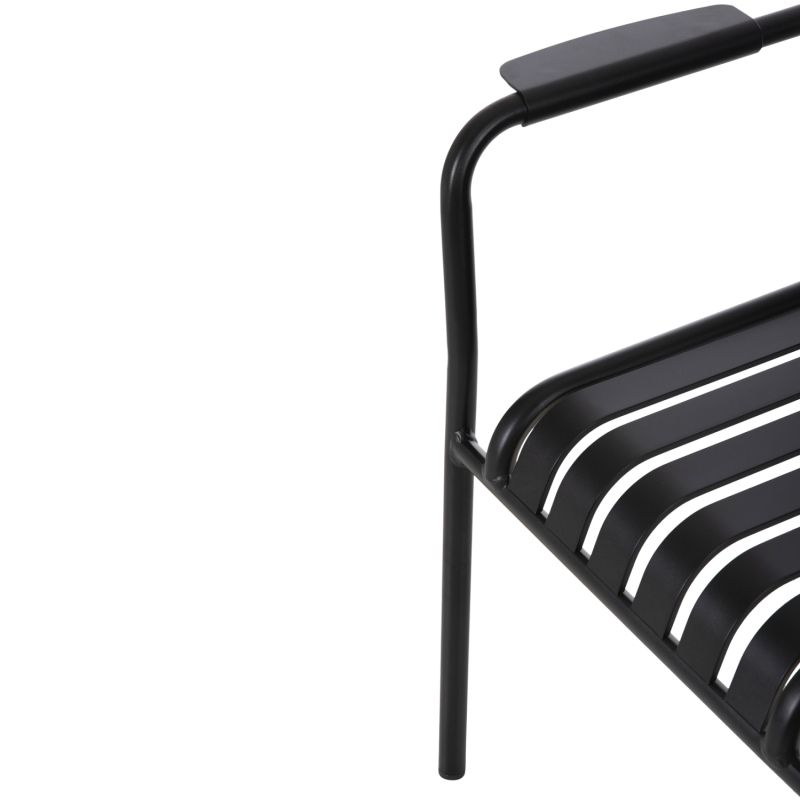 The RACHEL armchair is entirely made of aluminum in BLACK color. In terms of design, it is simple with beautiful curves and specially widened arms for greater comfort, while the fact that it is STACKABLE makes it particularly practical since you can store it in the smallest possible space.