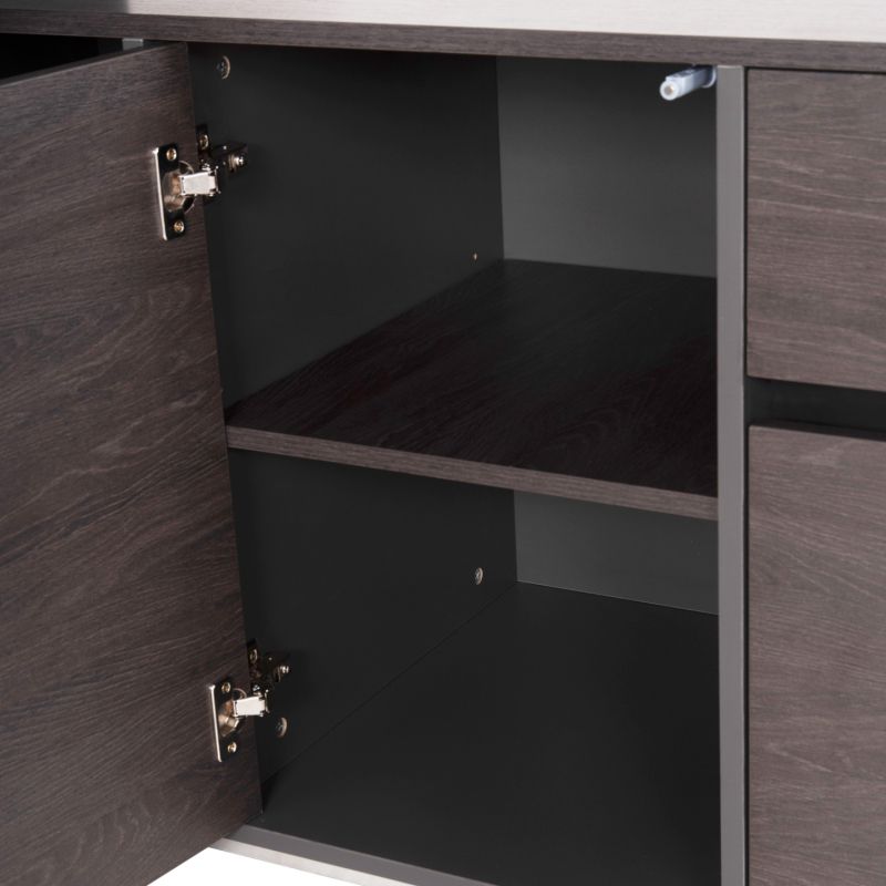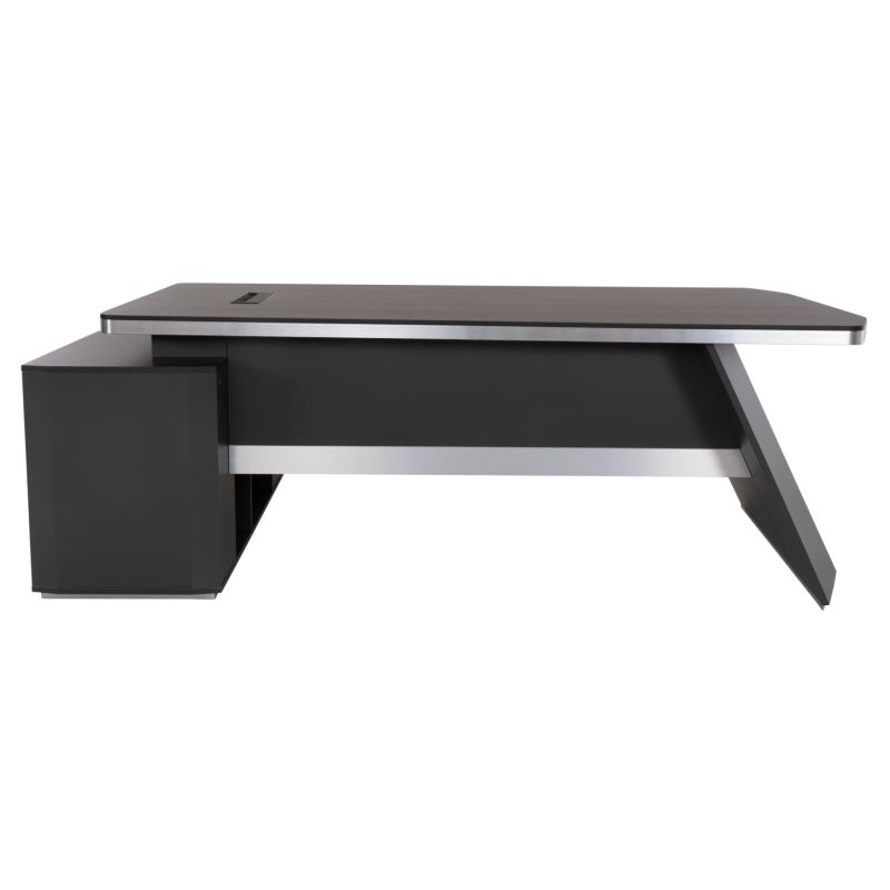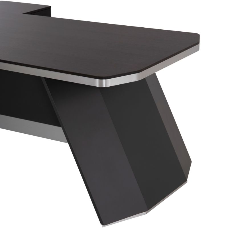 Right angled professional desk, made of high quality melamine, in grey and wenge color.