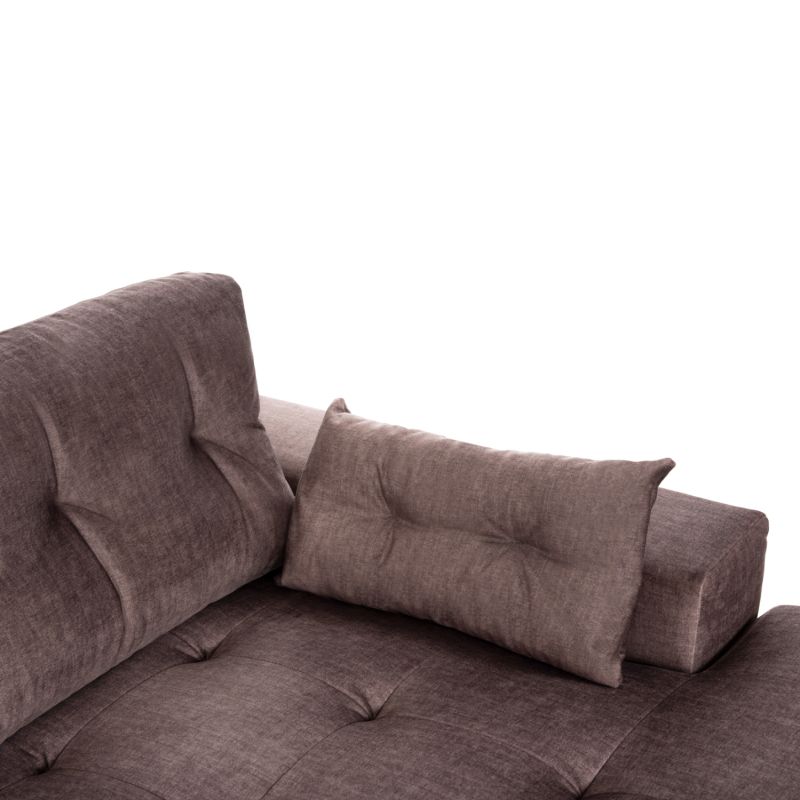 CLANCY is a new 3-seater sofa with high seating, in a right corner configuration (as you look at it), which will excite you. It is upholstered in a beautiful shiny (satin style) fabric in BROWN color, while the corner piece joins the main sofa with vertical panel hangers. It has 3 back cushions and 2 small decorative ones, while the seat has medium hardness foam fillings combined with horizontal (zig-zag) springs offering unparalleled comfort. The feature, however, that makes this wonderful sofa stand out, is that with two simple movements (PUMA mechanism) it becomes a double bed, offering a quality solution wherever and whenever needed! You simply lift the seat of the main sofa and pull it forward. And as if that wasn't enough, just under the sofa’s corner seat, there is storage space that completes the practicality of this unique piece of furniture! And of course, we offer this sofa with a 3-year frame warranty! Still thinking about it?