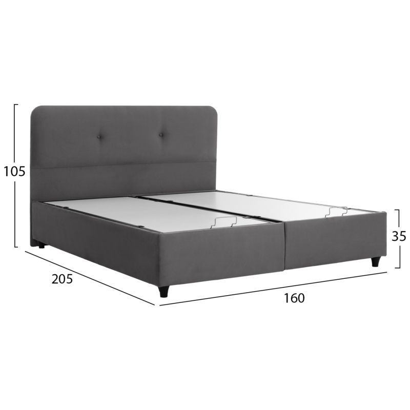 HM631.10 bed DOLORES, storage space, grey velvet, 160x200