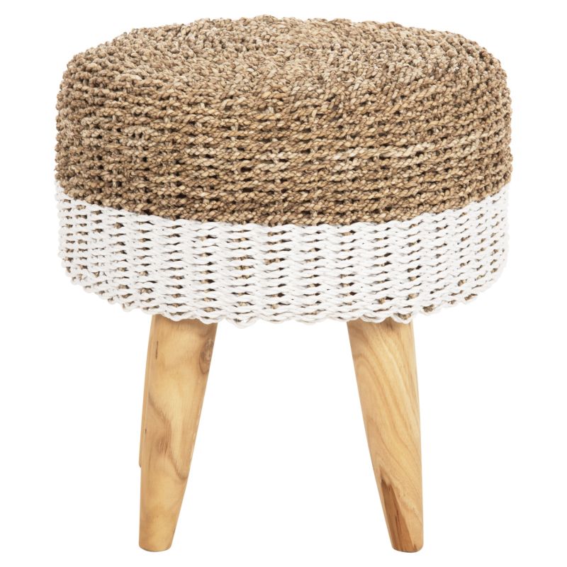 STOOL BEAM HM7827.01 TEAK WOOD AND SEAGRASS RUSH IN NATURAL & WHITE Φ42x46Hcm.