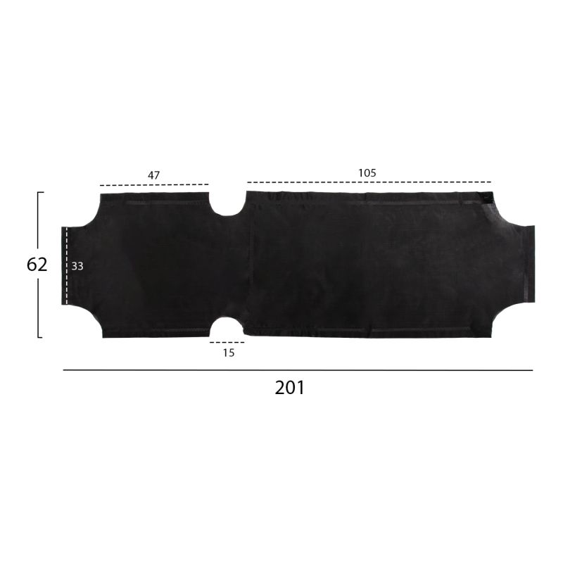 This fabric is a replacement fabric for classic professional sunbeds, and it is BLACK in color. It consists of a continuous piece of fabric while in the seating area there is a heat bonded second layer of fabric. Its material is TEXTILENE 2x1 at 600gr/m2.