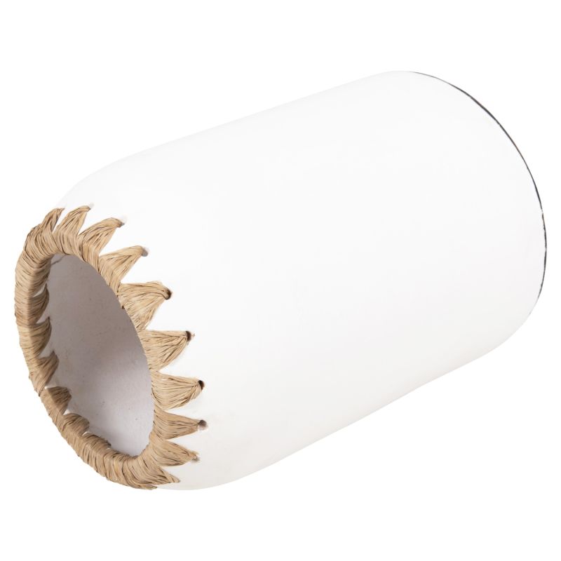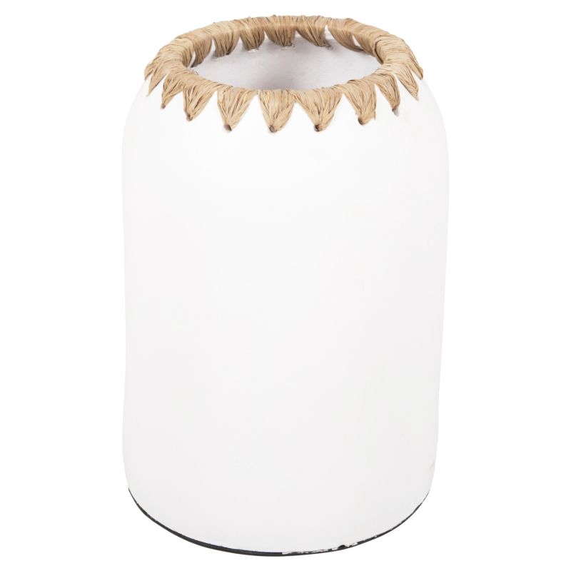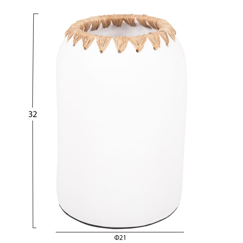 DECORATIVE VASE HM4377 TERRACOTTA IN WHITE WITH STRAW WEAVING ON THE RIM Φ21Χ32Hcm.
