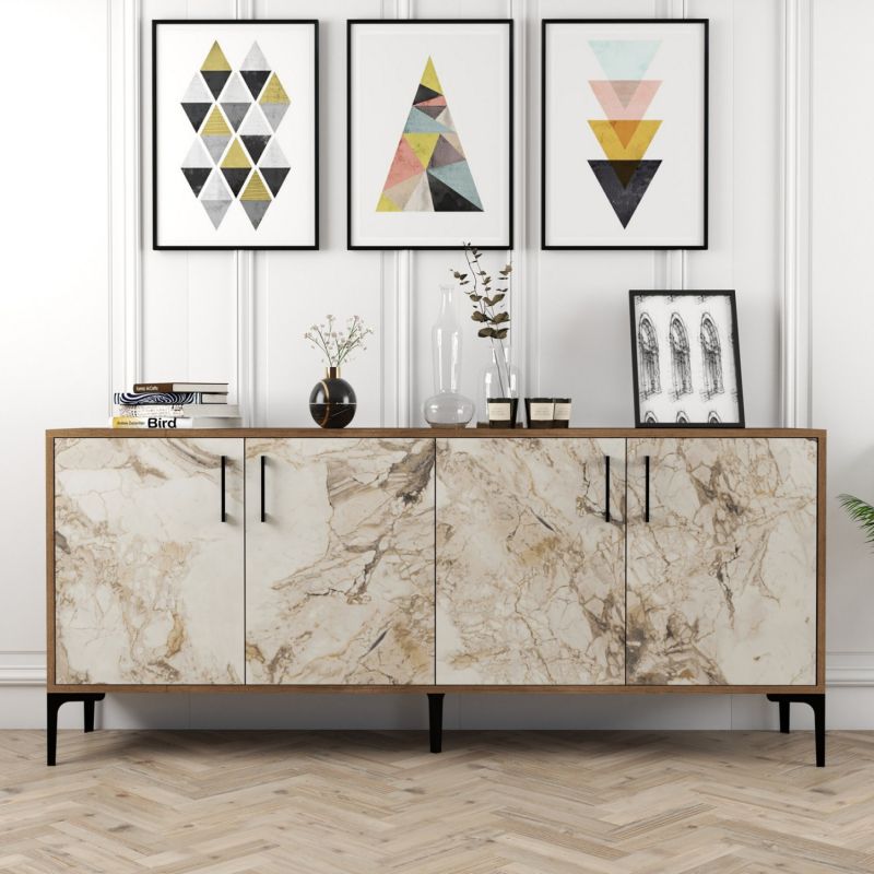 BUFFET MELAMINE ECRU MARBLE LOOK AND WALNUT 180x35x78Hcm.HM9428.02