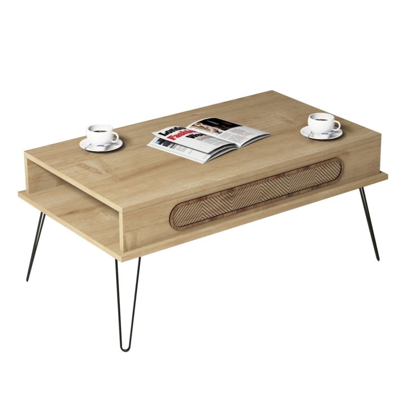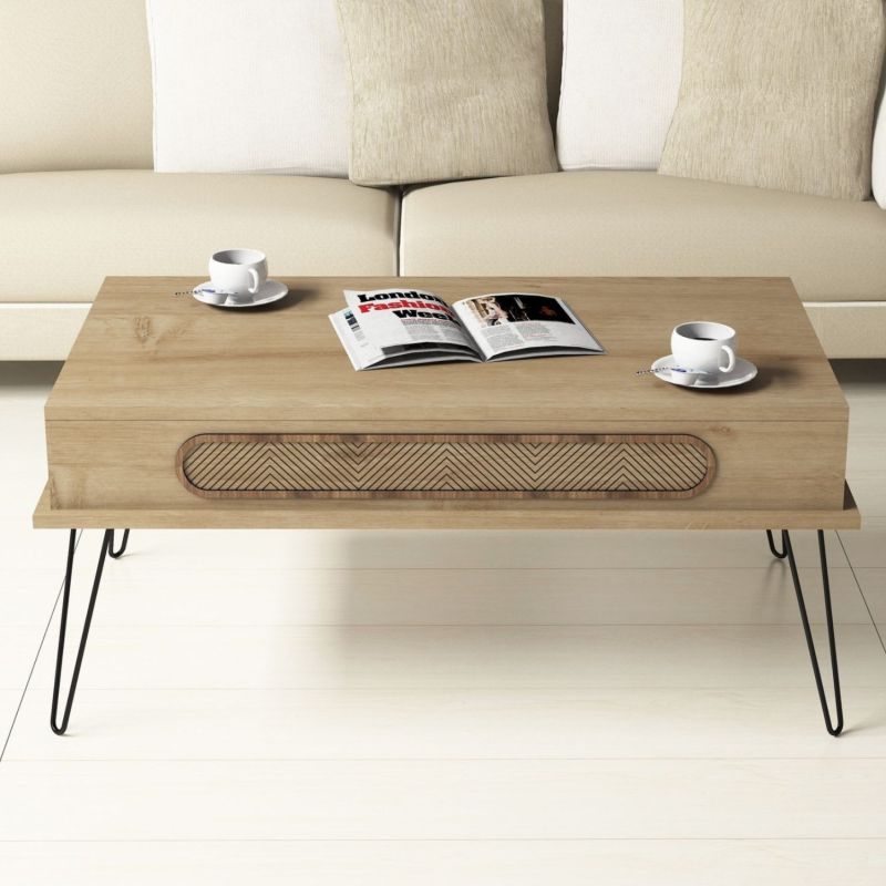 ΗΜ9500.01 coffee table----- This coffee table is a beautiful piece of furniture in natural OAK color. Its practical design will change the image of your living room or sitting room for the better. It's a build with a good-sized top surface. Underneath there is an open storage space as a second surface. The characteristic, however, in this coffee table is that on the sides there is a carved design with mechanical means (CNC Relief). Elegance, quality, and practical minimal design are some of the characteristics of the coffee table, which has been made for you.