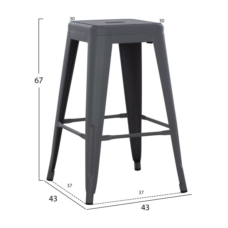 Σκαμπό μπαρ Melita, μεσαίου ύψους σε γκρι απόχρωση 43x43x67Yεκ..