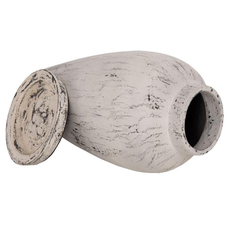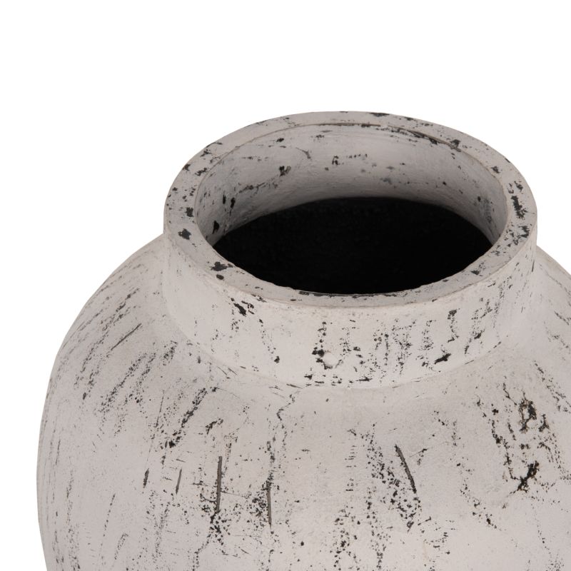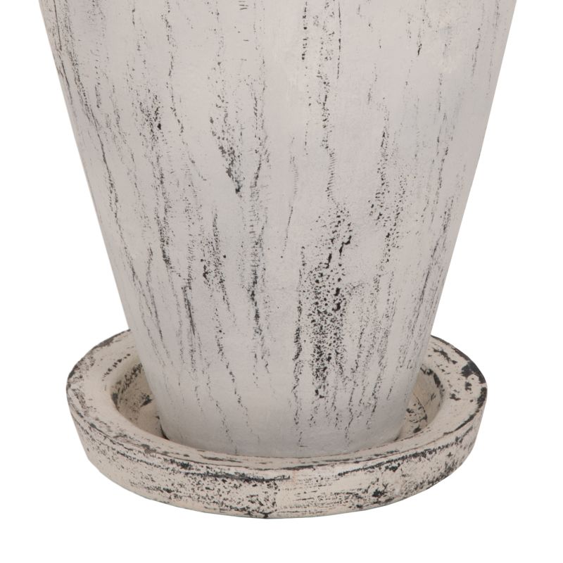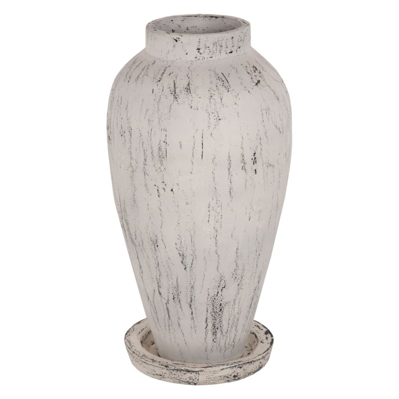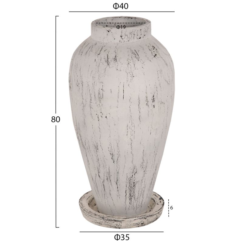 DECORATIVE FLOOR VASE WITH SAUCER-BASE LAUREL HM7938 TERRACOTTA IN WHITE PATINA Φ40x80Hcm.