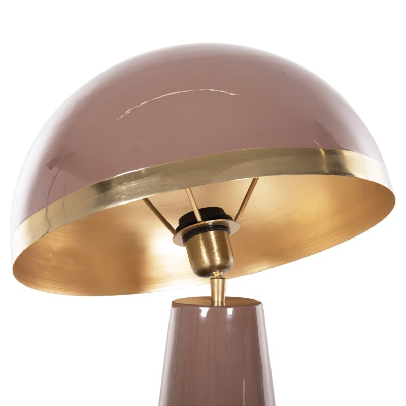 SMUSH is a big floor lamp made entirely of metal in SALMON color. Its shape resembles a mushroom, with a tall conical base and a hemispherical cap with GOLD perimeter, which is connected to the base thanks to a metal "ball" which allows you to rotate the cap by tilting it in every direction! A lamp that will not go unnoticed! Because light means more than a lamp. It means decoration, atmosphere, art, flair, and of course science.