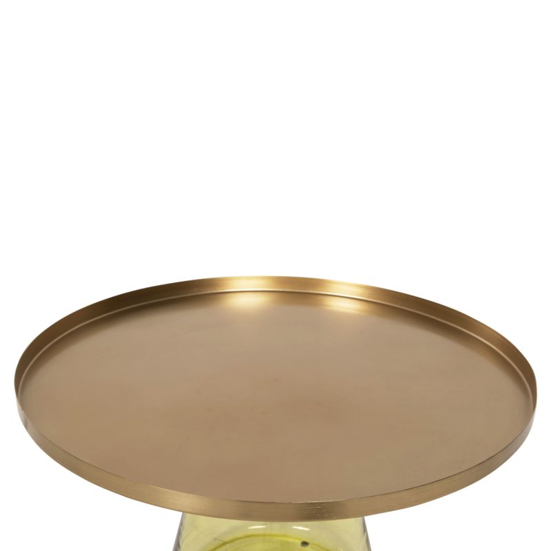 COFFEE TABLE SCAL HM9724 GREEN GLASS BASE-METAL TOP IN GOLD Φ76x43,5Hcm.