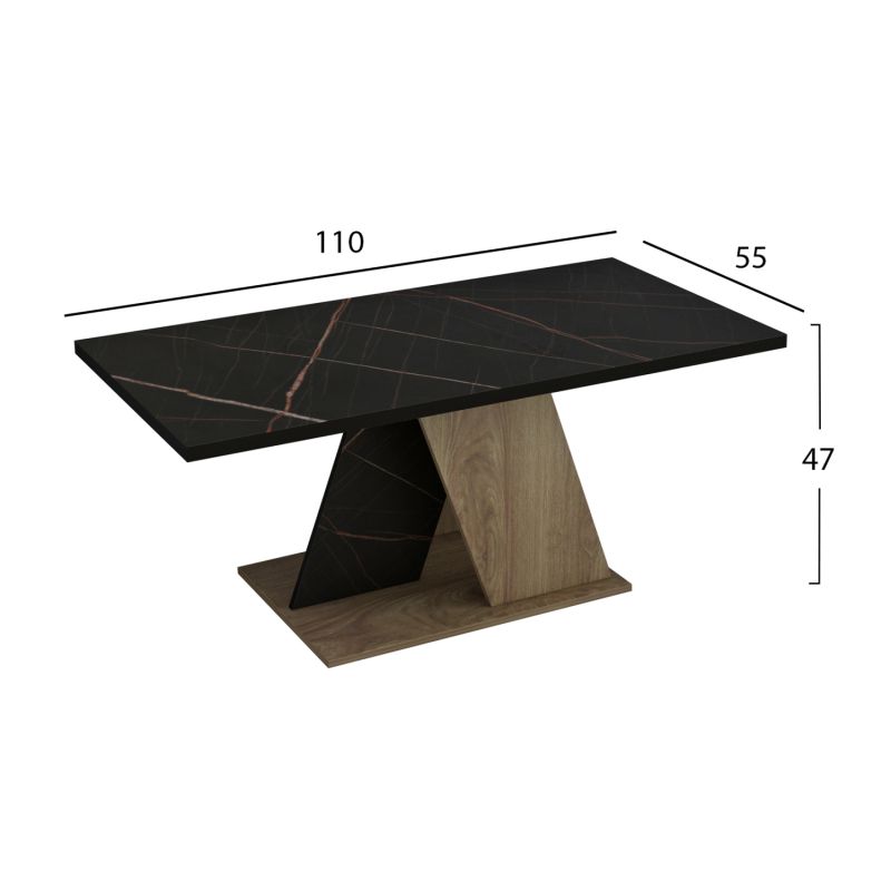 COFFEE TABLE DILE HM9528.03 MELAMINE IN NATURAL-BLACK MARBLE 110x55x47Hcm.