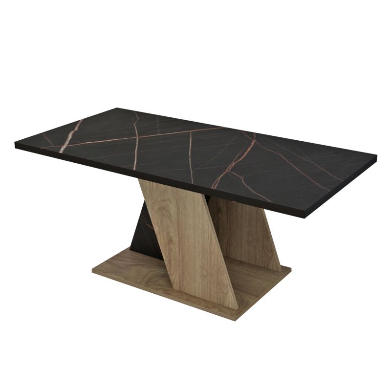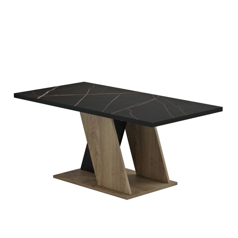 The DILE melamine coffee table is a quality and modern proposal for any living room. The two-tone color with the tabletop in BLACK MARBLE color and the NATURAL-colored legs in a cross arrangement, will give a completely new look to your space.