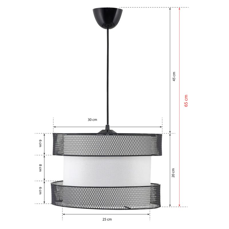 CEILING PENDANT FB97658.01, BLACK METAL, WHITE FABRIC, Φ30x65