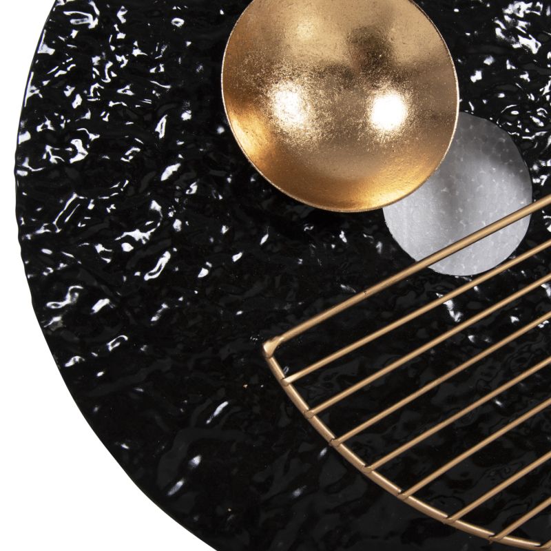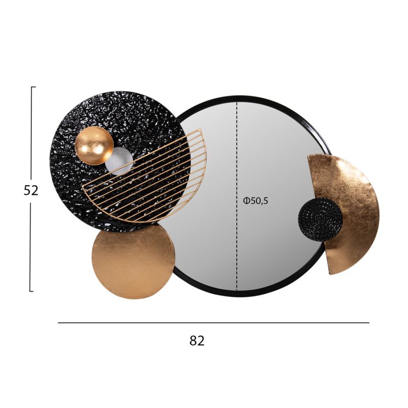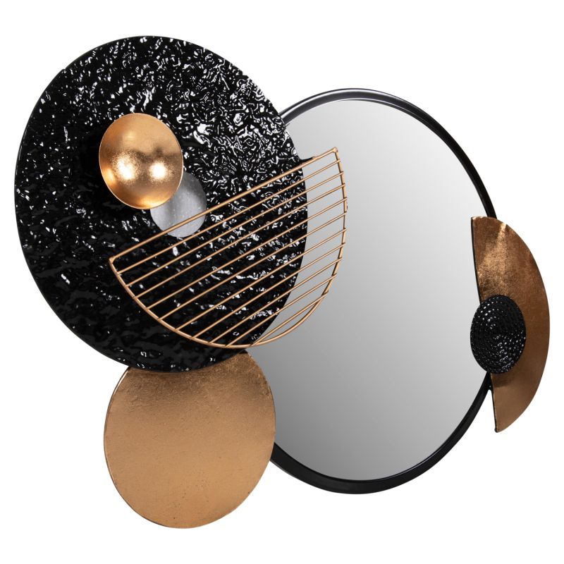 This mirror is a really beautiful piece in the decoration of your home! It is a round mirror in BLACK-GOLD shades in a metal frame with additional metal shapes, which also makes it a wall decoration. In general, the mirror is one of the necessary items for a home, but it is also ideal for hotels, Airbnb, or dining areas as a decorative element!