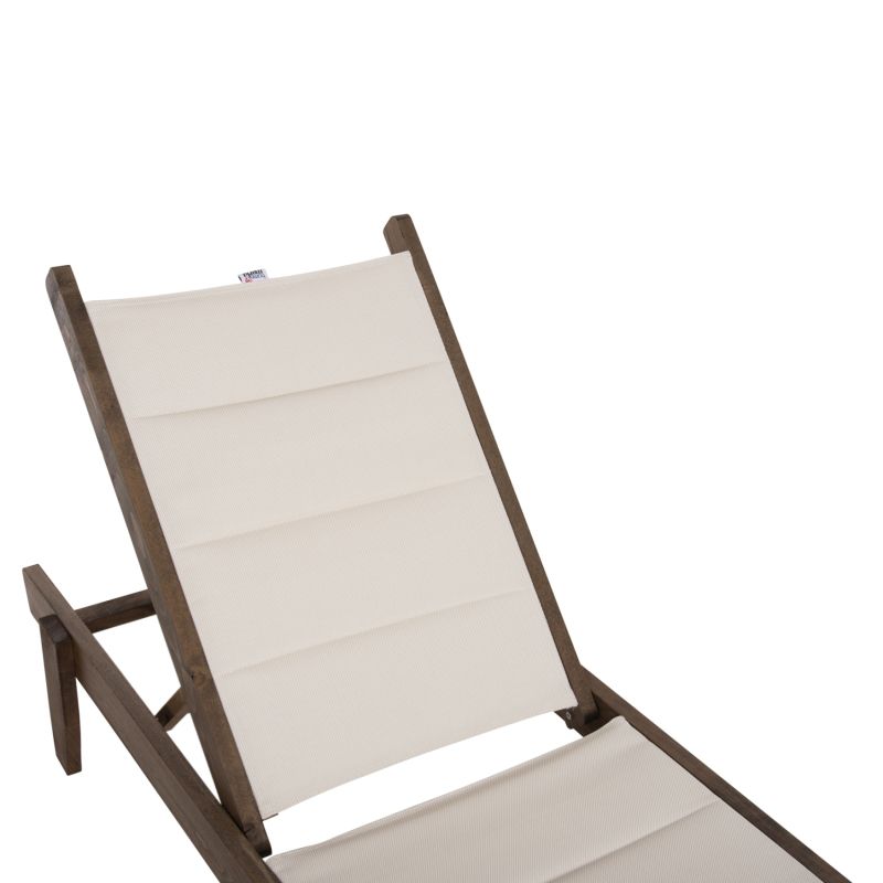 The MILOS professional beach lounger in WALNUT wood color is a modern and luxurious proposition for the beach. Its wooden construction makes it incredibly durable and sturdy, and the ECRU textilene 2x1 and 550gr/m2, with foam filling inside 3cm, matches the frame beautifully. The recline “stepper” has 4 reclining positions (+1 flat) and combined with its large dimensions, offers everything you want from a luxury beach lounger.