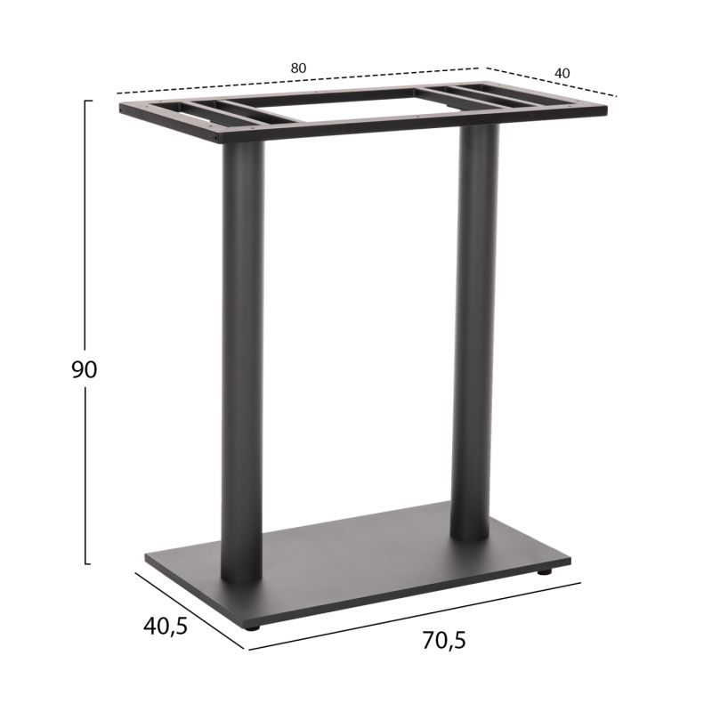 BAR TABLE BASE HM478.20 MEDIUM HEIGHT MATTE GREY METAL 2-PILLAR 40Χ80Χ90Hcm.
