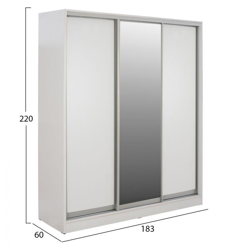 Ντουλάπα τρίφυλλη, σε λευκή απόχρωση, 183x60x220 εκ.