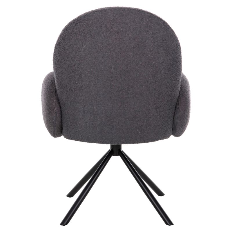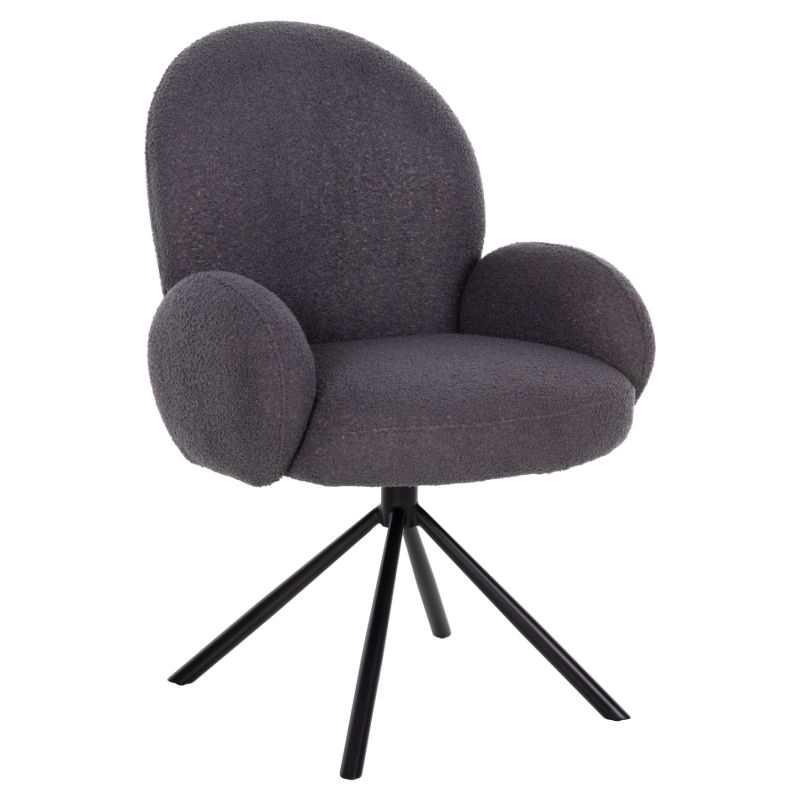Introducing the WINON swivel armchair in DARK GREY color which is one of the new additions to our range. It rests on a black metal four-pronged base on which the swivel pin is mounted. The upholstery of the armchair is made with high quality TEDDY fabric and the seat is comfortable responding to the character of the armchair, which is modern combining style and comfort. Its special feature is that it rotates by 180 degrees and not completely, and it has an automatic return to its original position.