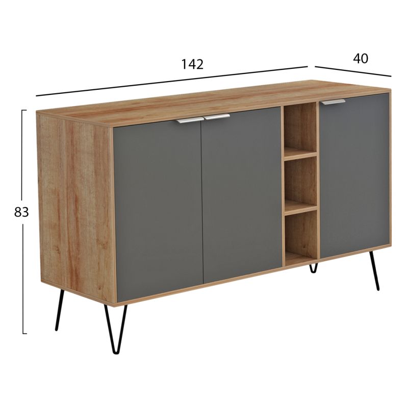 SIDEBOARD CABRON HM8874.11 MELAMINE IN NATURAL-ANTHRACITE & BLACK METAL LEGS 142X40X83Hcm.