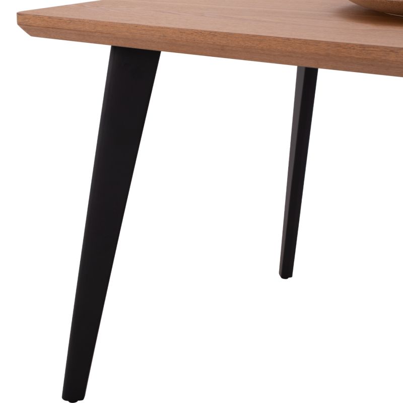 HΜ9301.01 is a rectangular dining table, with MDF tabletop with oak wood veneer in HONEY OAK color and rustic style. This surface is slanted and rests on 4 black legs. It is an imposing table in a large dimension and with a beautiful two-tone coloring, as a result of which it can fit aesthetically in almost any dining space.