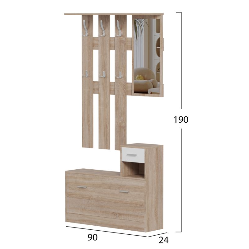 ENTRYWAY SET WITH MIRROR GORN HM2473.04 MELAMINE IN SONAMA-WHITE 90x24x190Hcm.