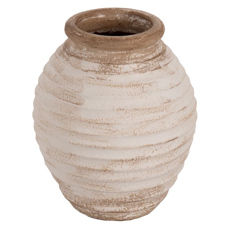DECORATIVE FLOOR VASE PYDNA HM7939 TERRACOTTA IN ANTIQUE WHITE-BEIGE COLOR Φ25x30Hcm.